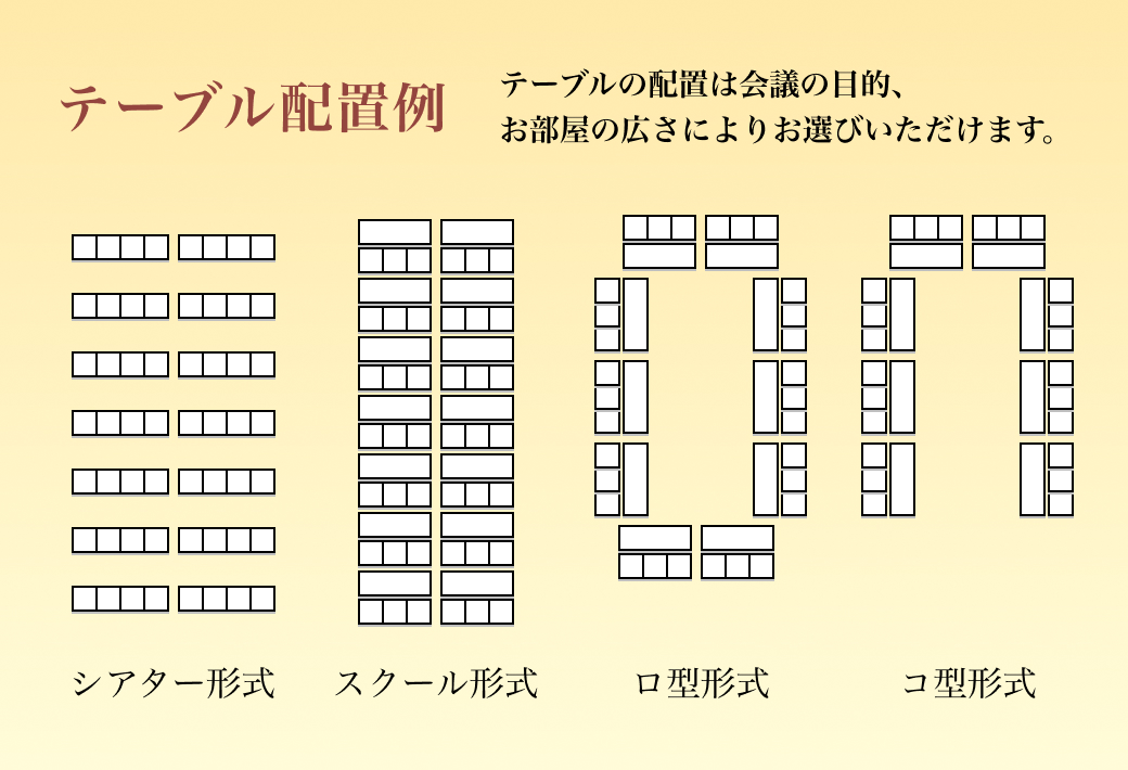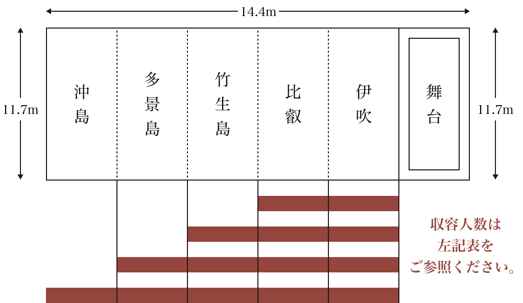 | 部屋 | 和宴(6列) | 和宴(4列) | イステーブル |