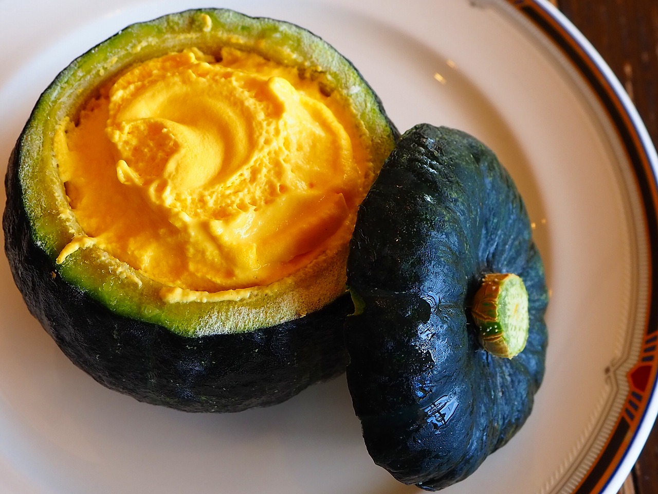 甘くておいしいかぼちゃをまるごとアイスクリームに仕上げた、見た目もかわいい一品。