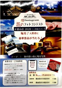 おごと温泉雄山荘にご宿泊いただいたお客様に、抽選で毎月豪華プレゼントが当たるフォトコンテストのお知らせです。